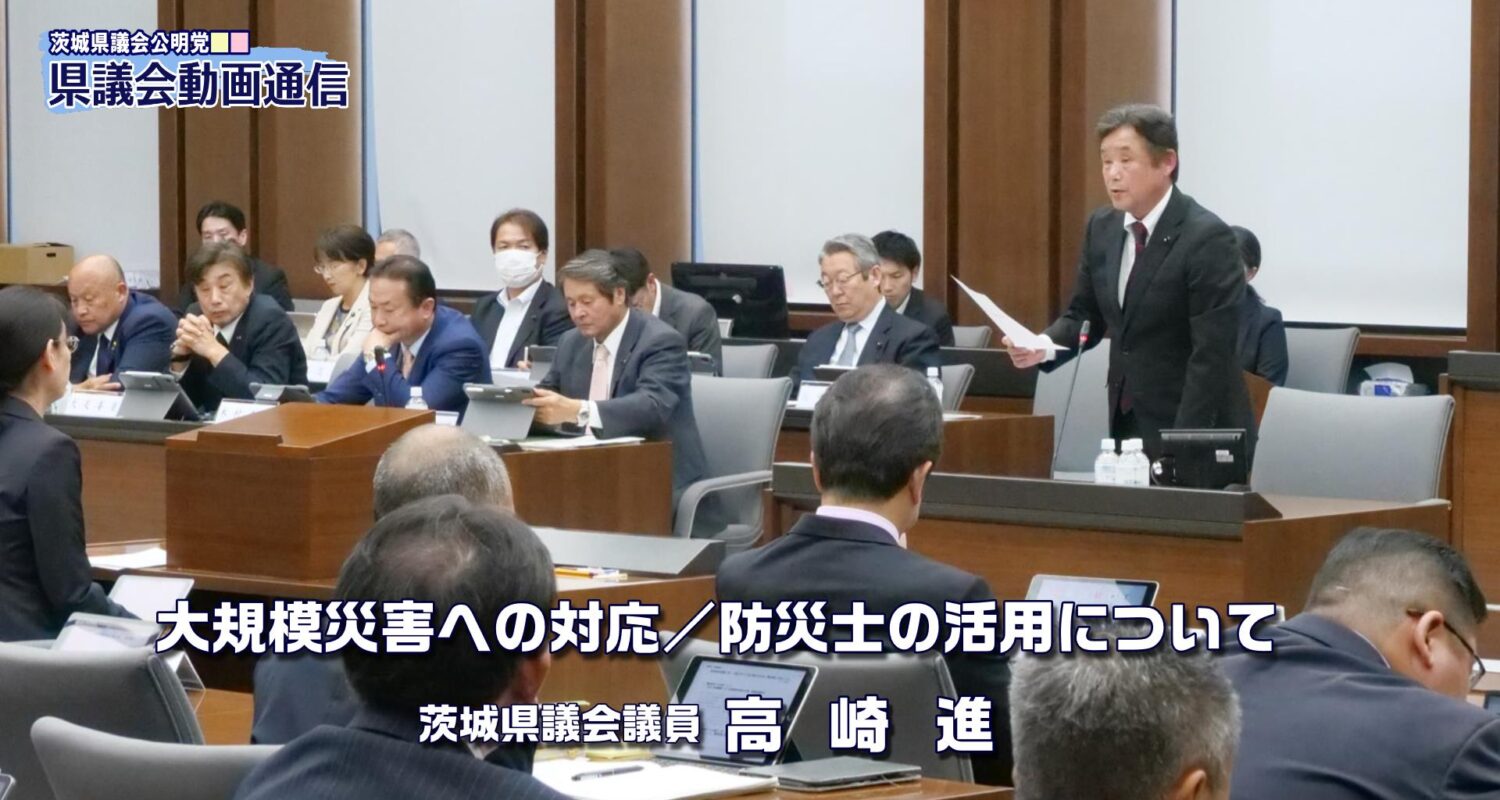10月21日、茨城県議会予算特別委員会において、公明党の高崎進議員は、防災体制の強化に関し、主に防災士の活用と遠地津波への対応の2点について質問を行いました。