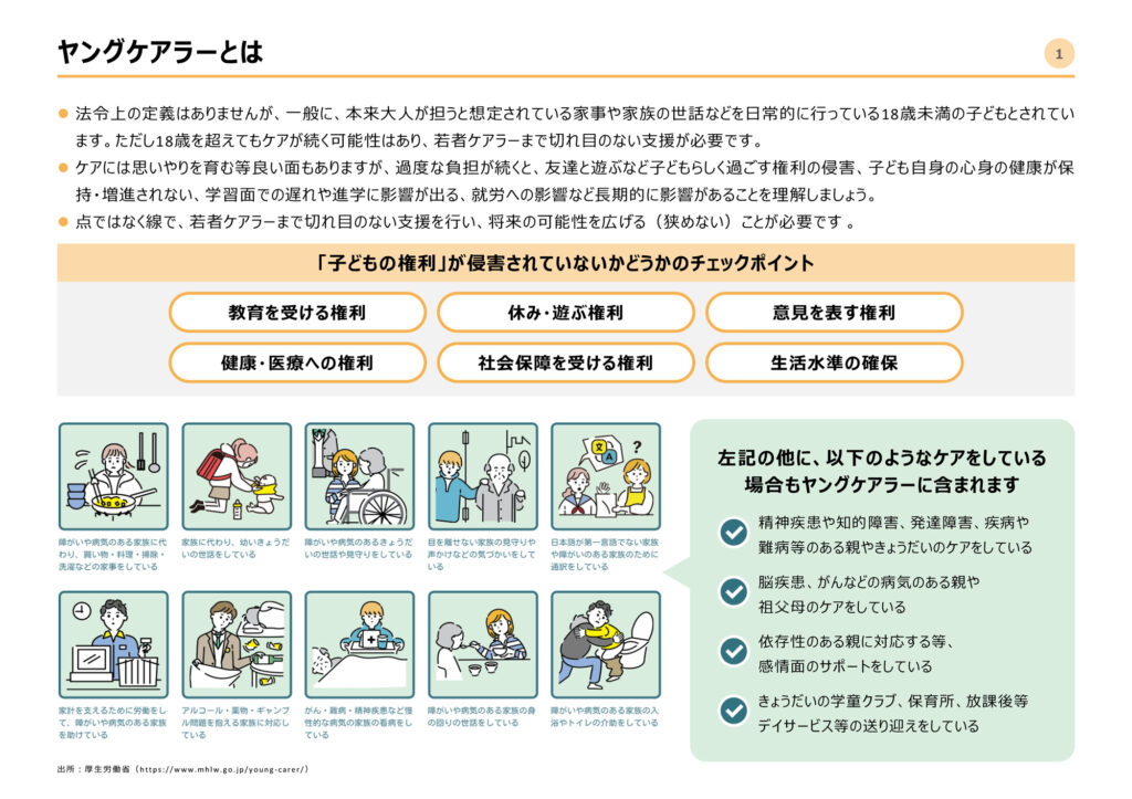 ヤングケアラーという言葉が注目されるようになってからしばらく経ちましたが、実際には多くの子どもたちが、その負担を“誰にも知られないまま”抱え続けています。家族の介護や家事を日常的に担っているにもかかわらず、自分がヤングケアラーであると気づいていない子どもも少なくありません。また、周囲の大人が異変を感じても「家庭の問題にどこまで踏み込んでよいか分からない」という迷いから、支援につながらないケースもあります。
