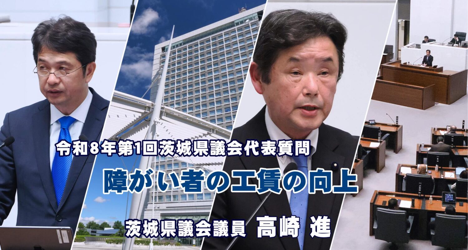 2026年3月3日、茨城県議会代表質問が行われ、茨城県議会公明党の高崎進議員が登壇しました。