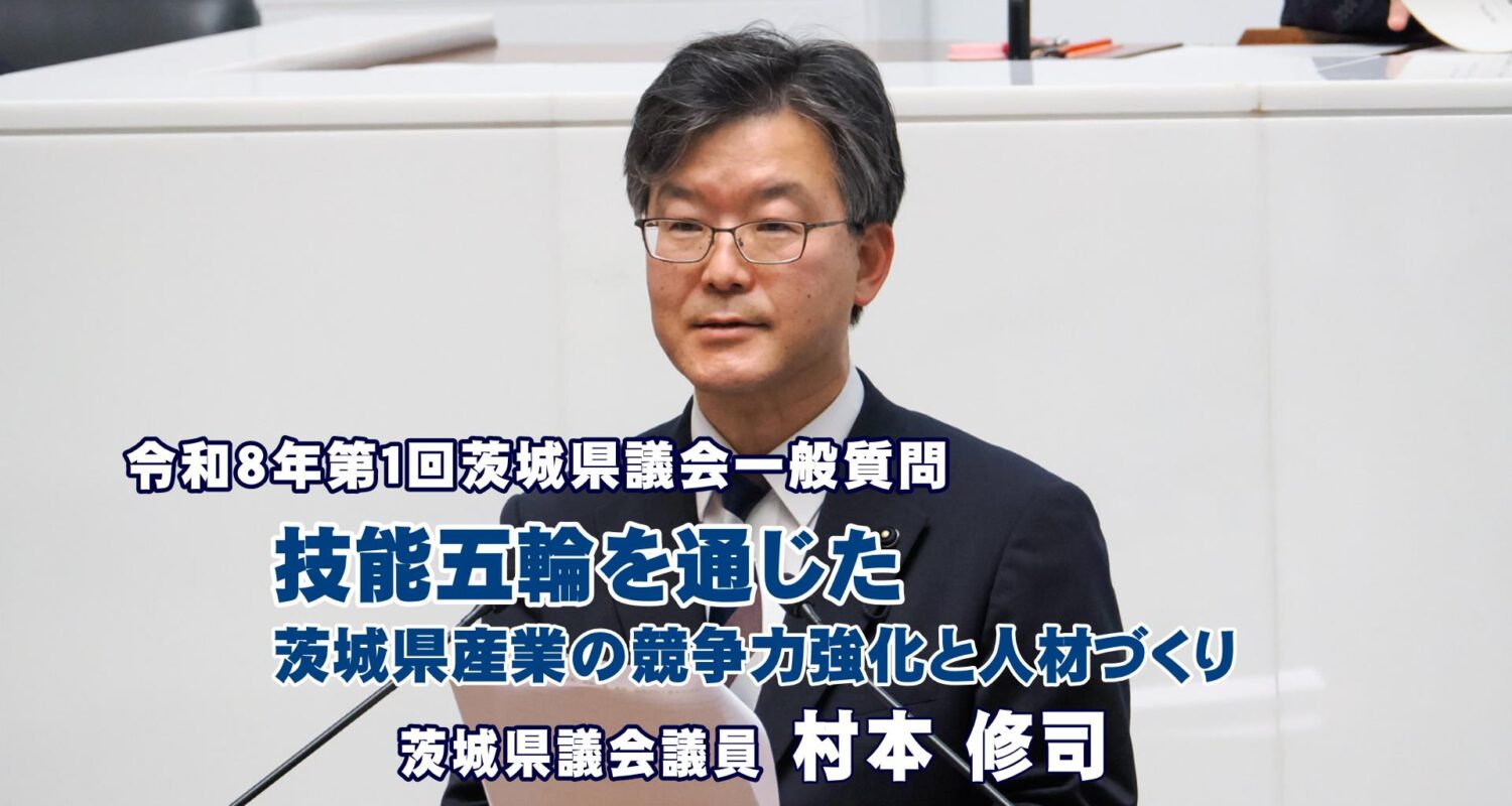 2026年3月5日行われた県議会一般質問で、村本修司茨城県議会議員は、技能五輪を通じた茨城県の産業競争力強化と人材育成について質問しました。